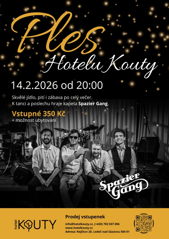 Zveme vás na tradiční Koutecký ples, který roztančí Hotel Kouty v sobotu 14. února 2026 od 20:00.