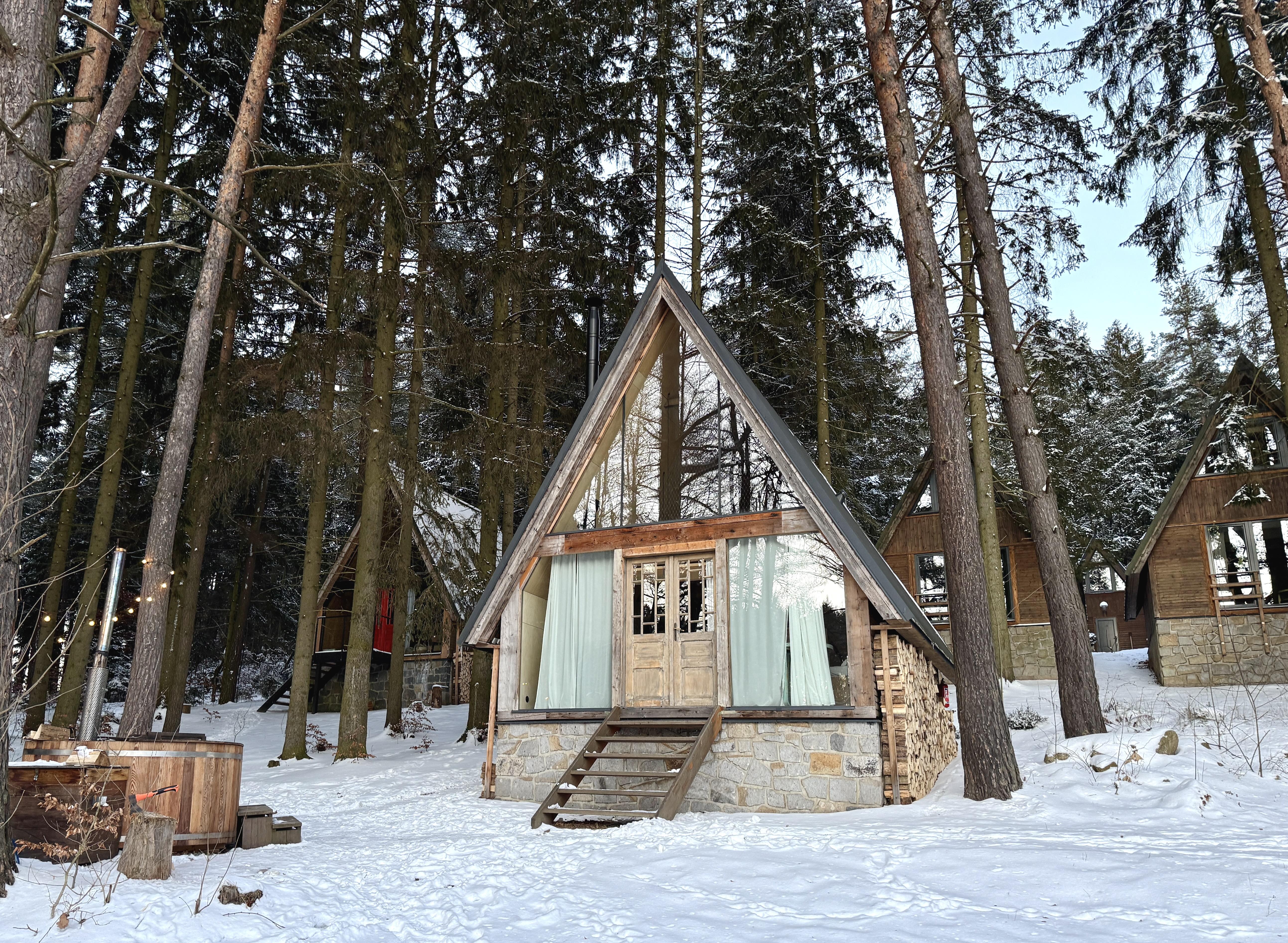 Čeká vás zimní pohádka uprostřed lesů – zamrzlý rybník ideální na bruslení, vyhřáté wellness, sauny přímo na břehu rybníka i prostorná plovoucí sauna na jeho hladině.