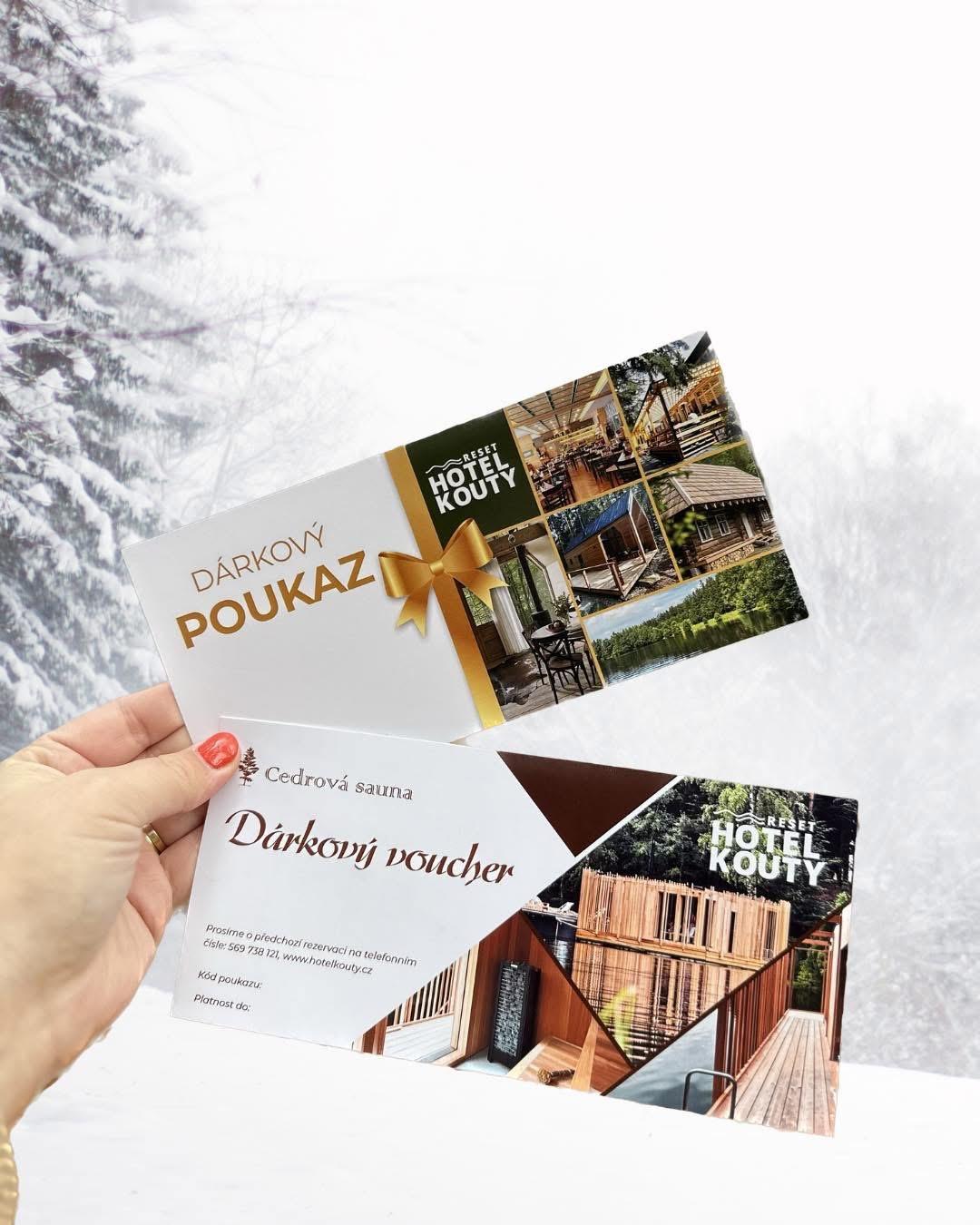 Darujte svým blízkým chvíle odpočinku a krásný zážitek. S dárkovým poukazem do Hotelu Kouty si sami vyberou termín i to, jak si svůj dárek užijí – wellness, masáž, večeři nebo pobyt v hotelovém pokoji či lesní chatičce.